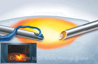 由于激光是头端发射能量,存在静脉穿孔或者闭合不全等情况。另外,在临床实际应用中,医生经验不足和大隐静脉口径过大等情况可以导致术后较高的复发率。几年来环形激光的应用在一定程度上缓解激光治疗的缺陷。