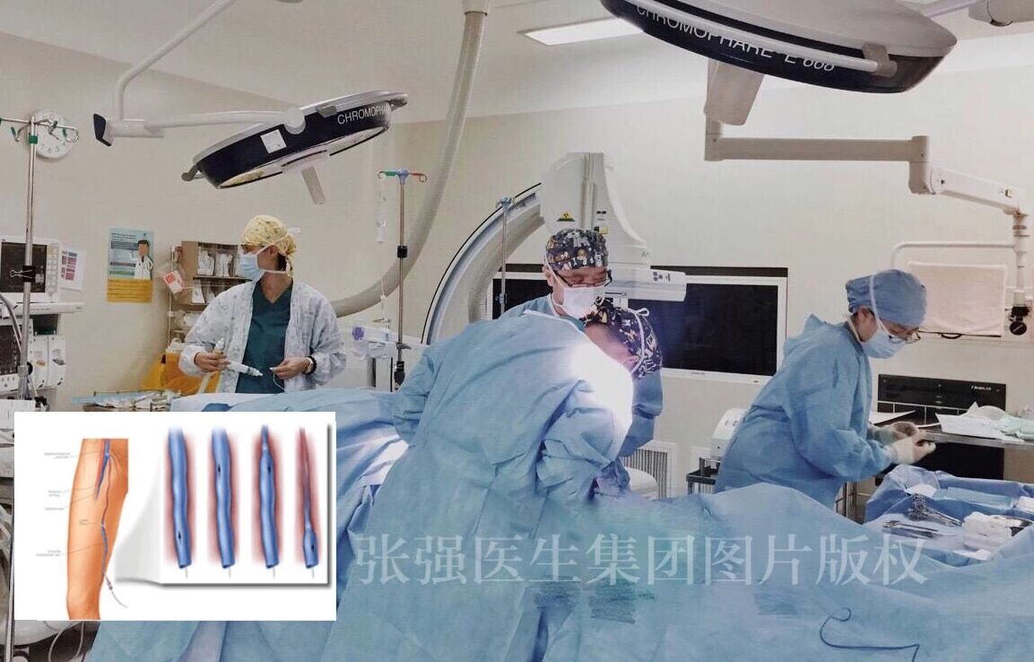 腔内射频消融闭合术(ClosureFast)由张强医生集团于2015年首次引入大陆,并成功实施了数百例。其操作原理与激光手术相似,但其周围释放能量的方式使得闭合大隐静脉主干的效果显得更为可靠。在超声引导下静脉周围注射特殊的肿胀液,基本解决了术后疼痛、闭合不全等问题。