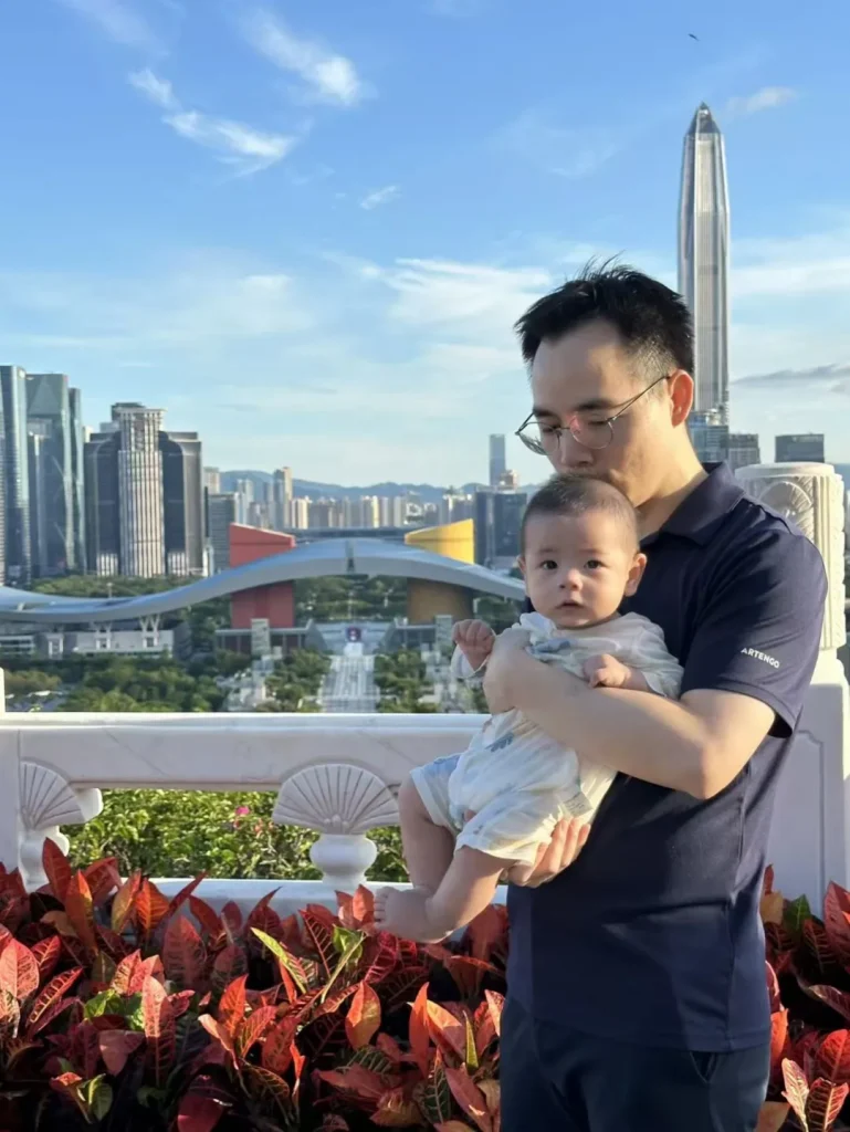 最近,他还带着刚出生的孩子登上深圳的一座小山。